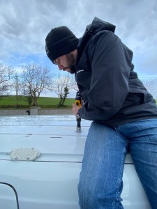 As we didn’t have a garage full of power tools to work with, buying sheets of Plywood and cutting it ourselves would be quite tricky. We found a business in Limerick also called Van-Guard that pre-cuts ply based on the make and model of your van. There wasn’t much of a price difference between getting it pre-cut and buying the sheets of plywood to cut ourselves so this was an easy choice. The ply arrived very quickly and we set to work installing it. We soon found that while it was cut for our type of van it still required some modification. By a stroke of good luck, our local Aldi had battery powered jigsaws in stock, so after a quick shopping trip we were soon trimming edges and cutting out curves.