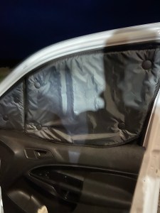 These are a must have as they help keep the van cool by deflecting the heat and they also add a lot of privacy. They attach to the windows via suction cups and they stop 99% of the light coming into the van.
