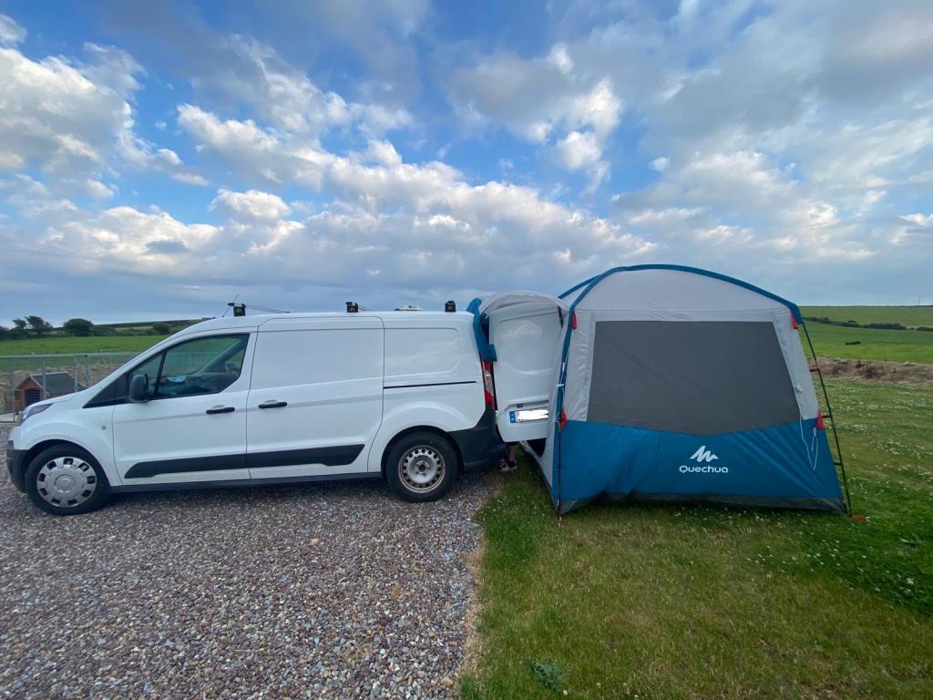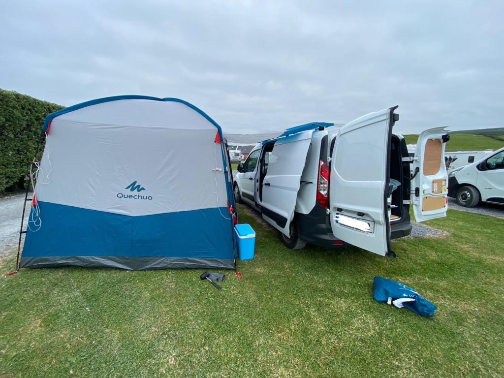 We added a €99 tent from Decathalon to our camping kit as an extra room. This has come in so handy when visiting campsites, so we can leave extra bits like a cooler box, table and chairs in it when we’re on day trips. It’s also been a lifesaver in Irish weather, when it has been raining it acts as an extra living spaces to comfortably sit down.